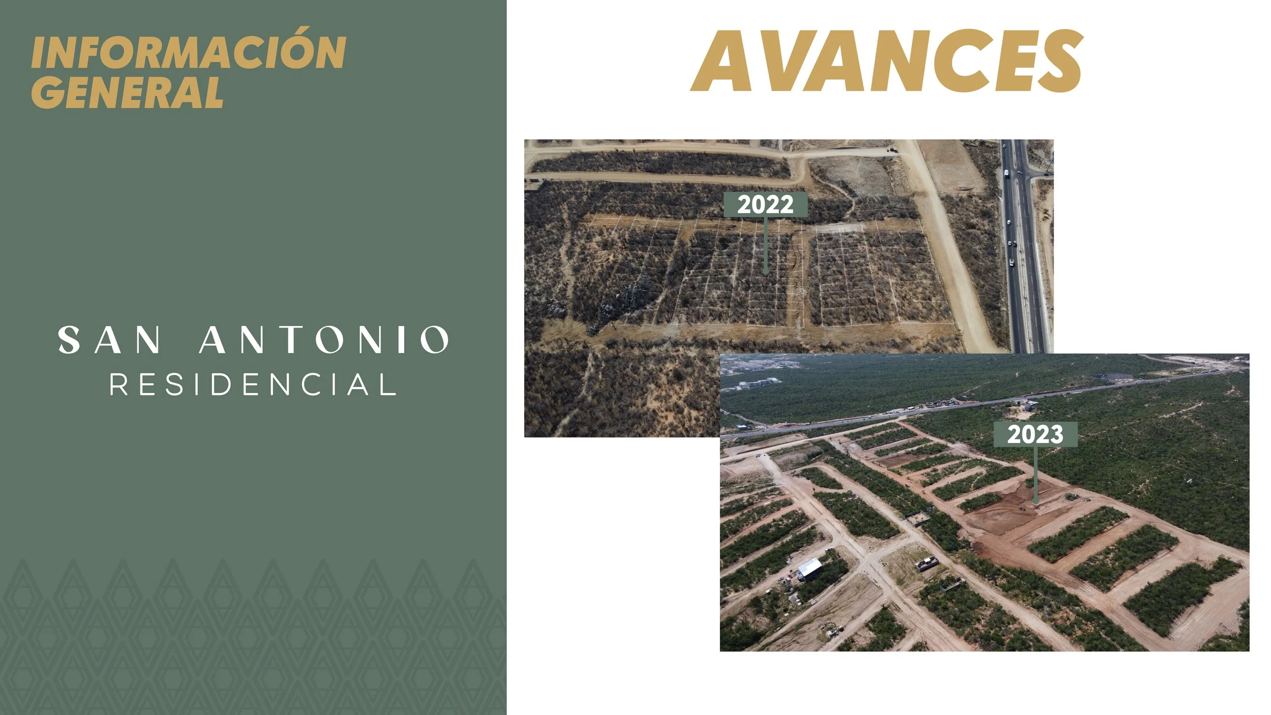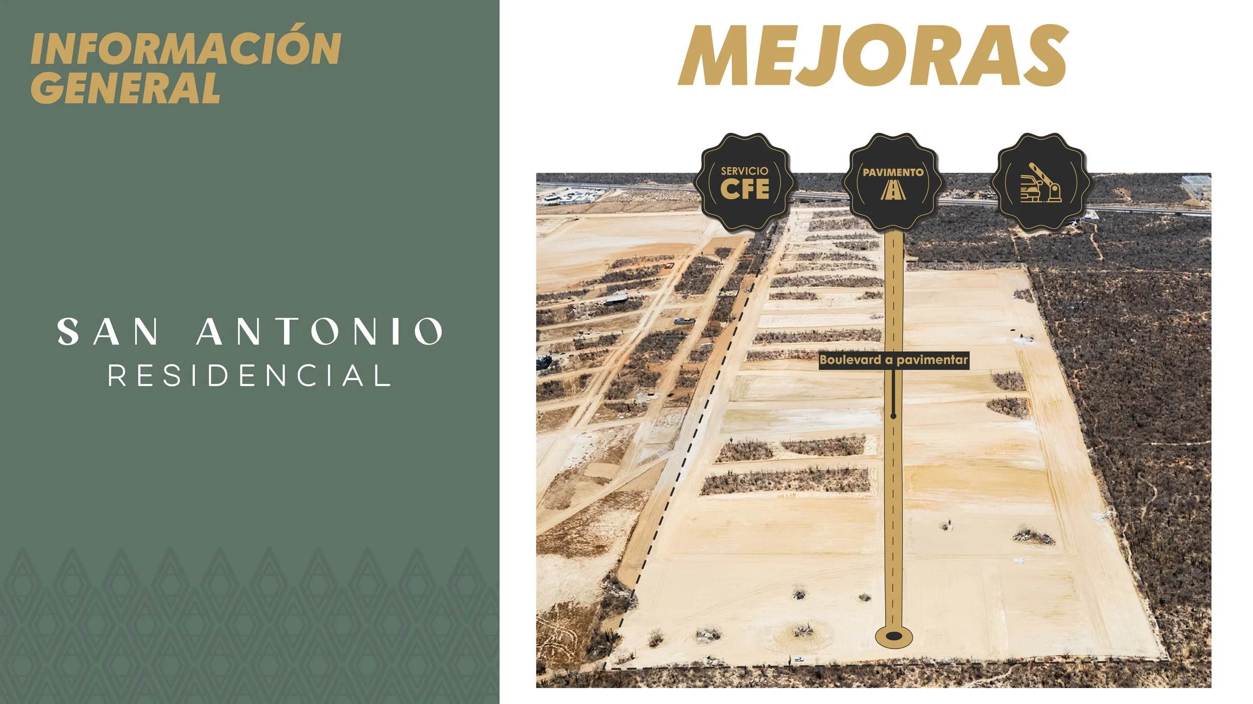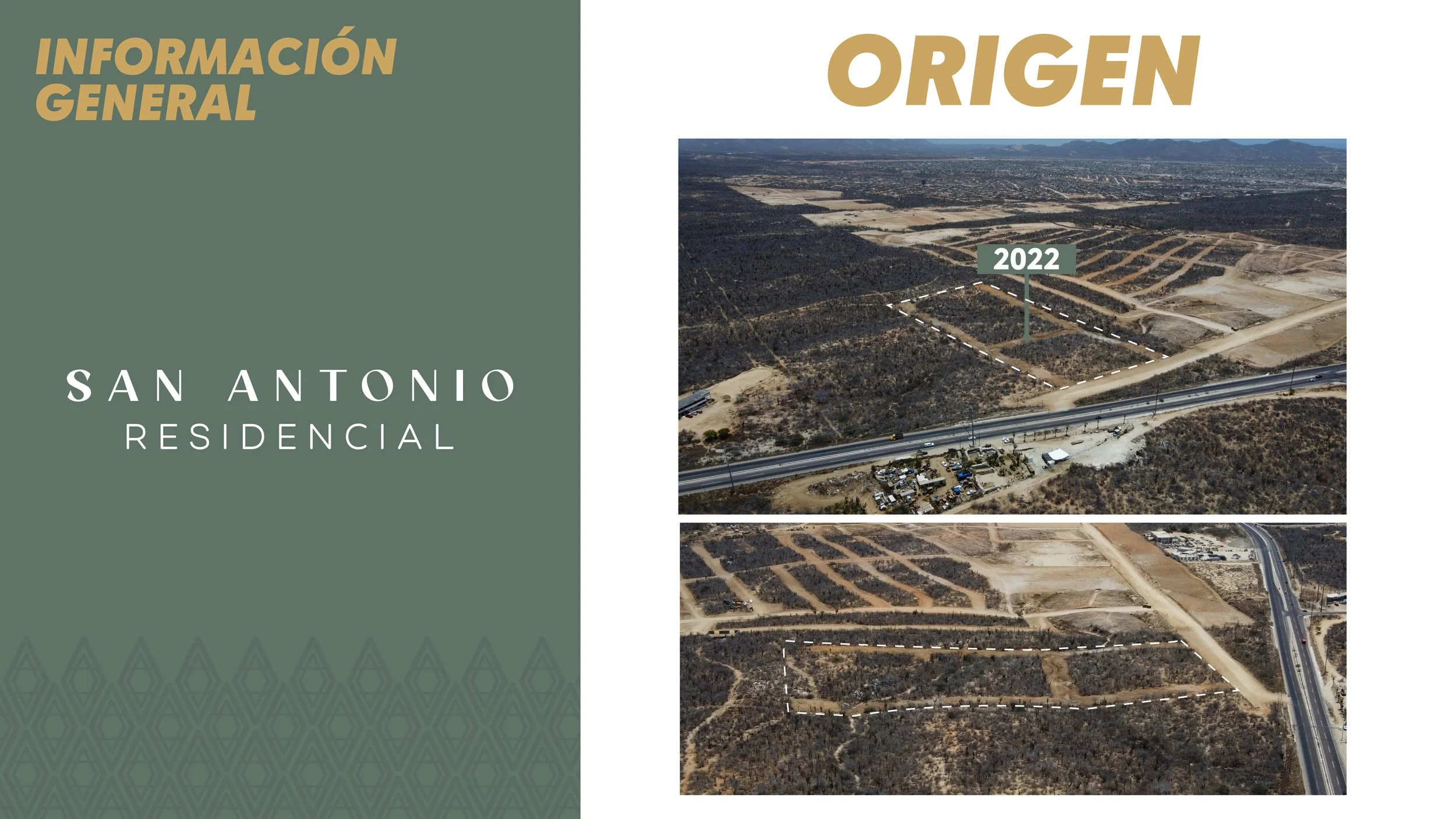 Es un proyecto de lotes en la entrada de Cabo San Lucas, colindante a la carretera transpeninsular, frente al fraccionamiento Portales, el cuál se encuentra ubicado en la zona de mayor crecimiento de la ciudad, dentro de las inmediaciones del plan de desarrollo urbano. San Antonio Residencial es un desarrollo que cuenta con cinco fases, se destaca por tener macro lotes comerciales desde 750 m² con un uso de suelo mixto moderado, lotes comerciales ubicados en el boulevard principal desde 285 m² y en su mayoría terrenos habitacionales desde 160 m².